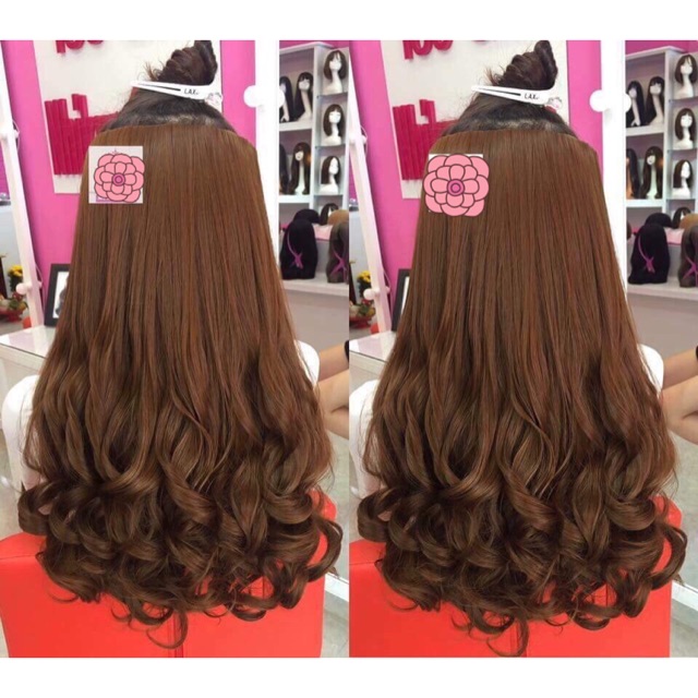 Kẹp Tóc Giả Nửa đầu Dài Ngang Vai 40cm Xoăn đuôi Dlsk007 Tóc Giả
